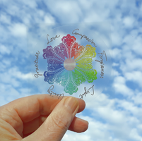 De ontwerpen zijn gebaseerd op ijskristallen waarrond gesproken zegenwoorden werden geplaatst. Elke sticker bevat 6 woorden die verbonden zijn met het centrale thema van de sticker, zoals liefde, wijsheid, enz. Plaats zo'n positief geladen sticker naar keuze op een doorzichtige fles en het water in die fles zal alle goede vibraties van die sticker opnemen. Kies je thema!